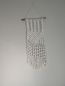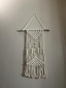 Hoja/Pluma blanca de macramé