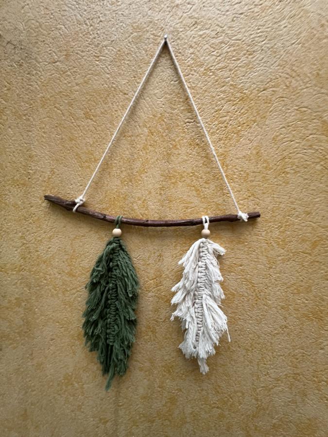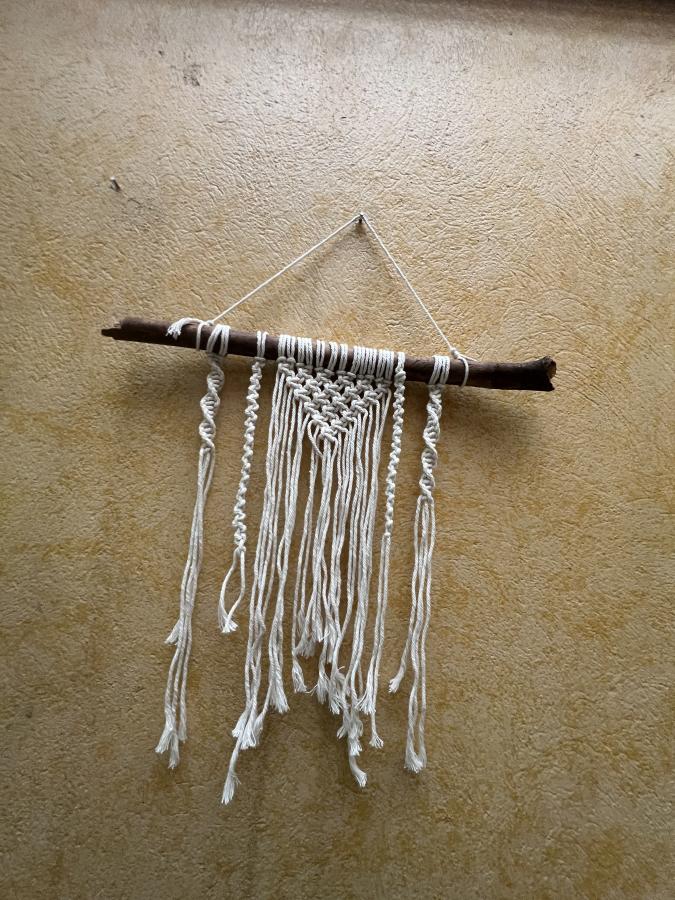 Yo soy Santiago. Un niño de 11 años que mi profesora me enseño a hacer macramé en 2023. Aproveché ese conocimiento y decidí empezar este emprendimiento. Yo quiero incluir en nuestros hogares tapices, porta maceteros, y plumas de macramé porque son muy bonitos.