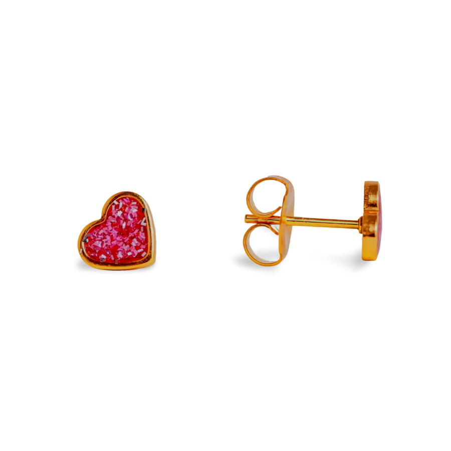 ARITOS CORAZON GLITTER ROSA HIPOALERGENICOS
